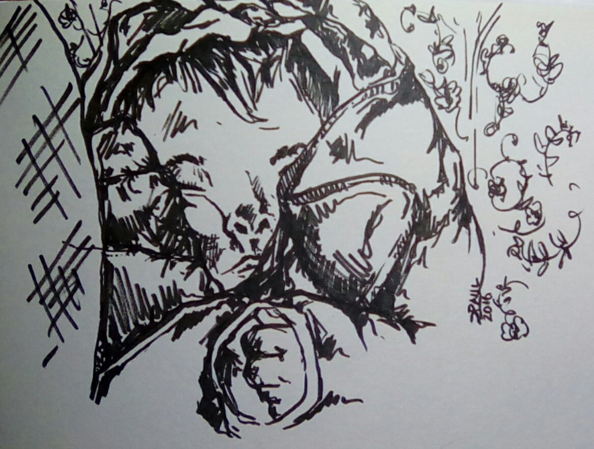 Captured one of my little ones still snoozing after a car ride home. He was successfully transfered from car to couch, and is sunken down into his coat. Done with #FaberCastell PITT pen in size B in black in my moleskin sketchbook.